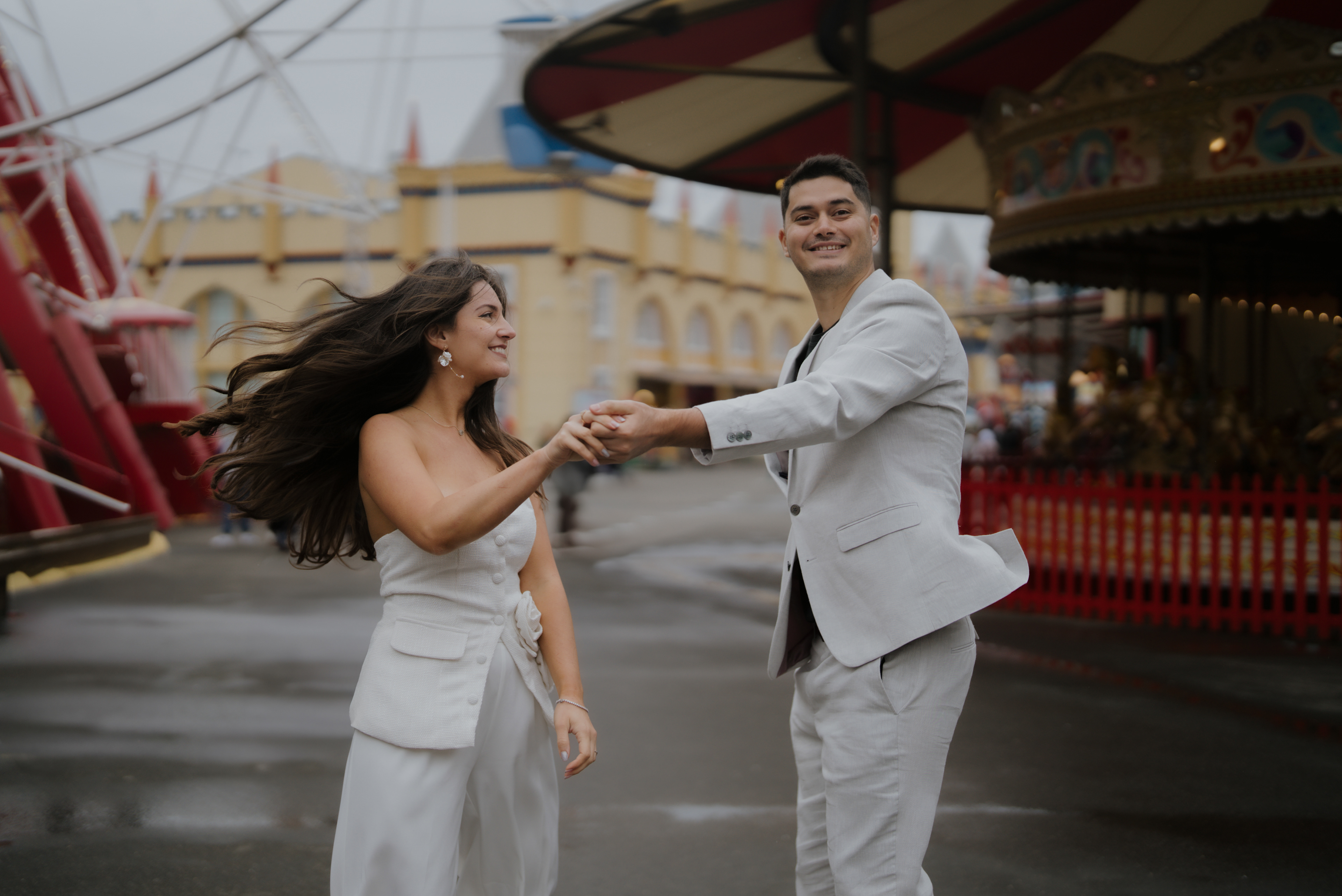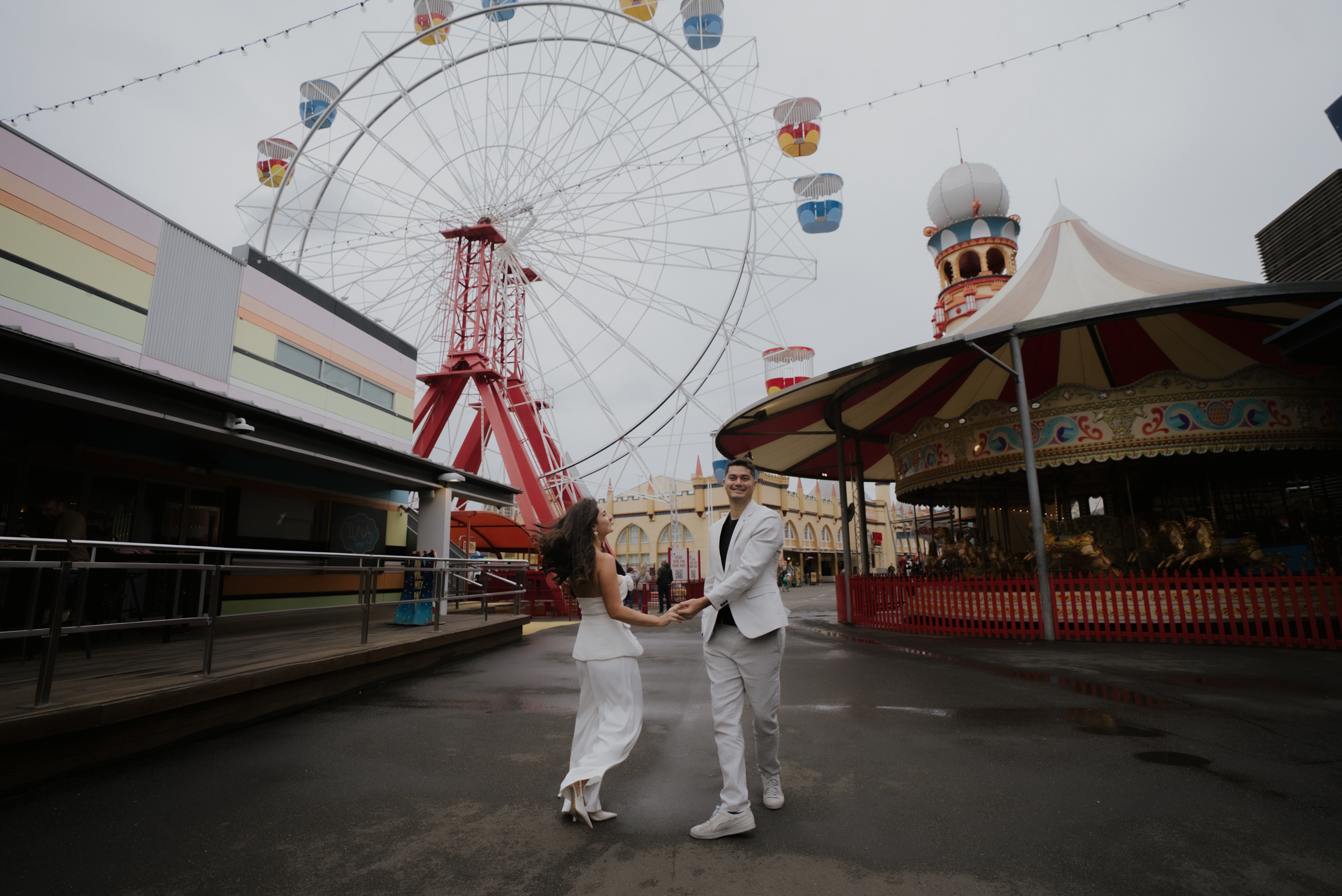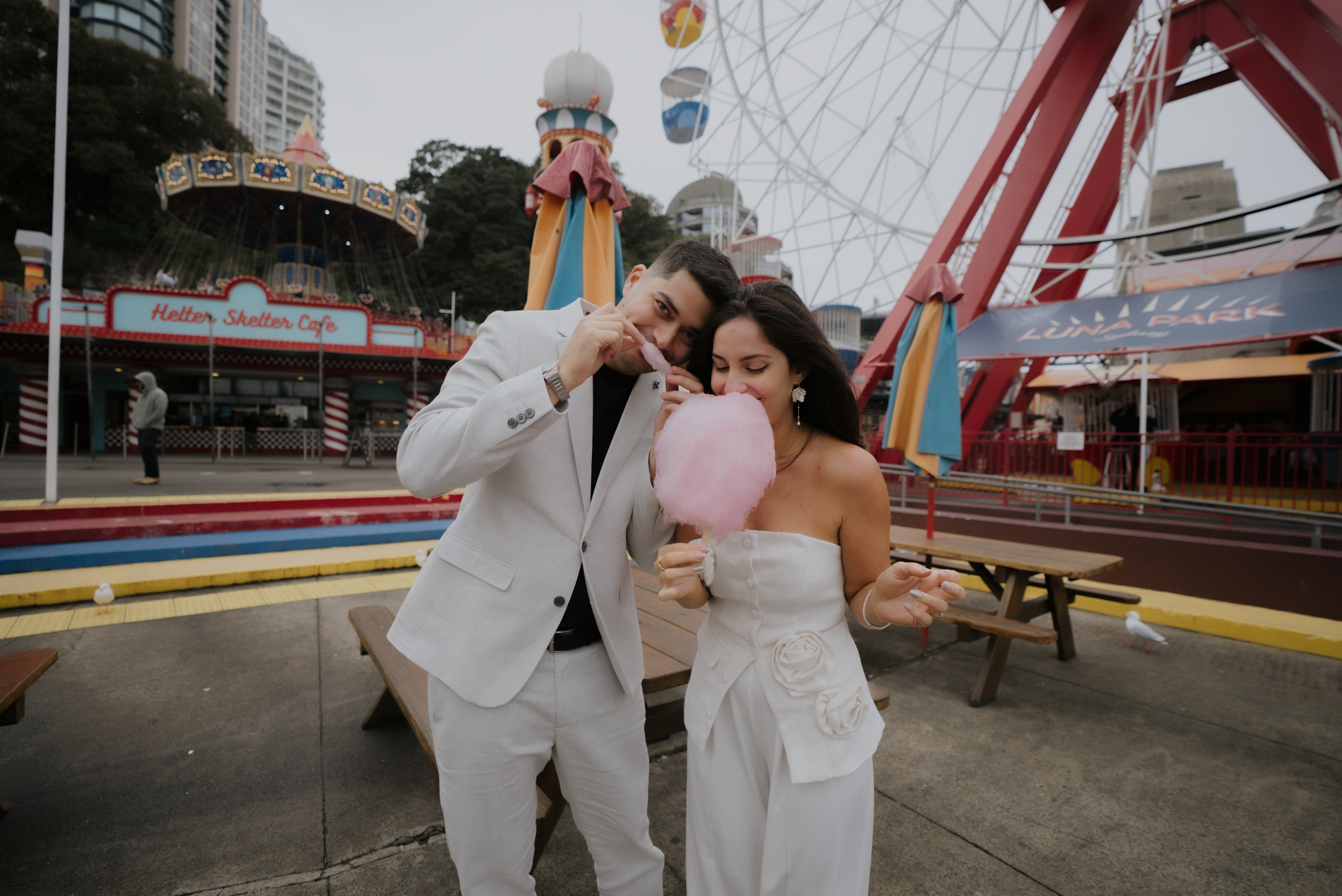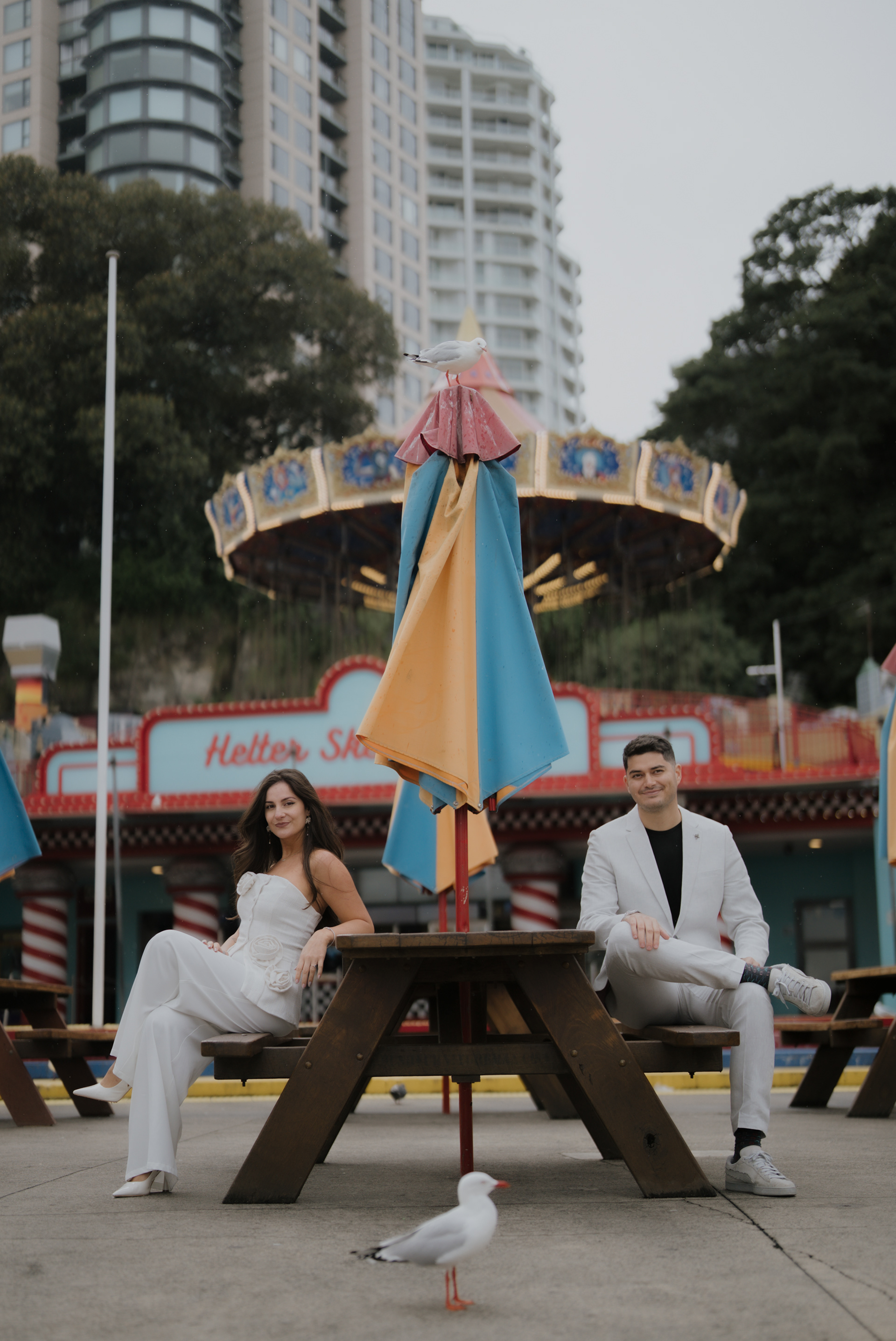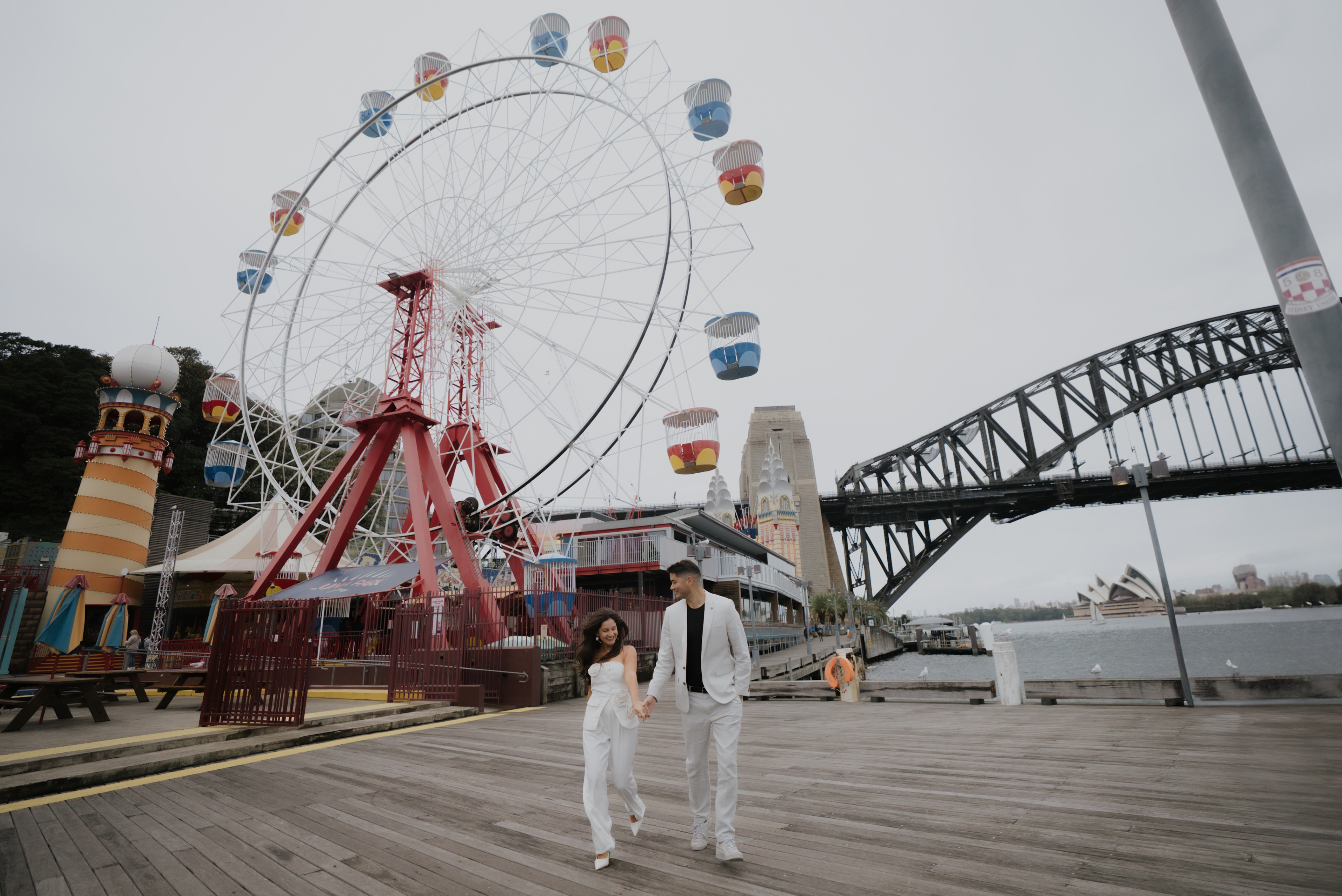 United, always together! Laerta and Jose’s love story unfolds in the heart of Sydney, from the iconic Opera House to the dreamy views of Lavender Bay. Wharf kisses, Luna Park laughs, and city lights that mirror their spark.